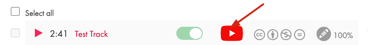 - Each of your tracks will have the YouTube icon, as shown below. Click on it.
